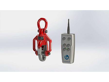Kranhaken mit Fernauslösung per Funk, Verwendbar für die unterschiedlichsten Anwendungen, 2 Varianten zur Auswahl, entweder 2,0t oder 5,3t, Basis Set bestehend aus: Haken, Steuerung mit Tragegurt, Ladegerät und Koffer, Erweiterung des Sets auf bis zu 4 Haken pro Fernsteuerung, Funkreichweite 50m,